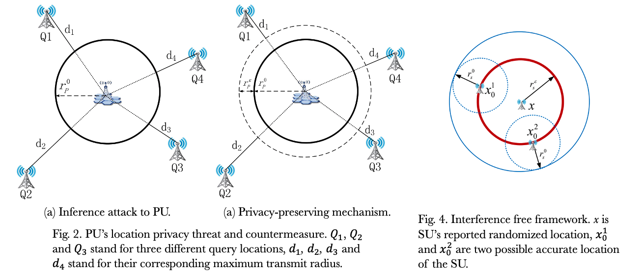 Database-driven cognitive radio has been well recognized as an efficient way to reduce interference between Primary Users (PUs) and Secondary Users (SUs).In database-driven cognitive radio, PUs and SUs must provide their locations to enable dynamic channel allocation, which raises location privacy breach concern. Previous studies only focus on unilateral privacy preservation, i.e., only PUs’ or SUs’ privacy is preserved. In this paper, we propose to protect bilateral location privacy of PUs and SUs. The main challenge lies in how to coordinate PUs and SUs to maximize their utilities provided that their location privacy is protected. We first introduce a quantitative method to calculate both PUs’ and SUs’ location privacy, and then design a novel privacy preserving Utility Maximization protocol (UMax). UMax allows for both PUs and SUs to adjust their privacy preserving levels and optimize transmit power iteratively to achieve the maximum utilities. Through extensive evaluations, we demonstrate that our proposed protocol can efficiently increase the utilities of both PUs and SUs while preserving their location privacy.
